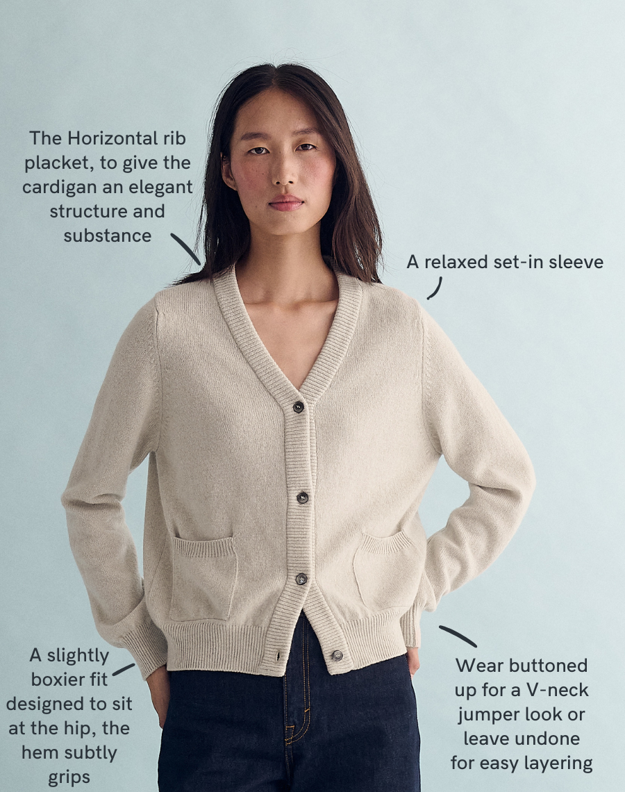 The original cardigan - a perennial bestseller and still the benchmark. Relaxed yet polished, classic yet modern - it works buttoned up or left undone, with whatever your style. Inspired by the cardigan worn daily by our founder Rachel’s grandfather, it’s old school made new, with a simplicity that always feels right. Knitted in the British Isles from 100% traceable Scottish-spun lambswool and finished with our signature horizontal placket and sustainably sourced Mother of Pearl buttons. A modern icon - the cardigan, done properly.