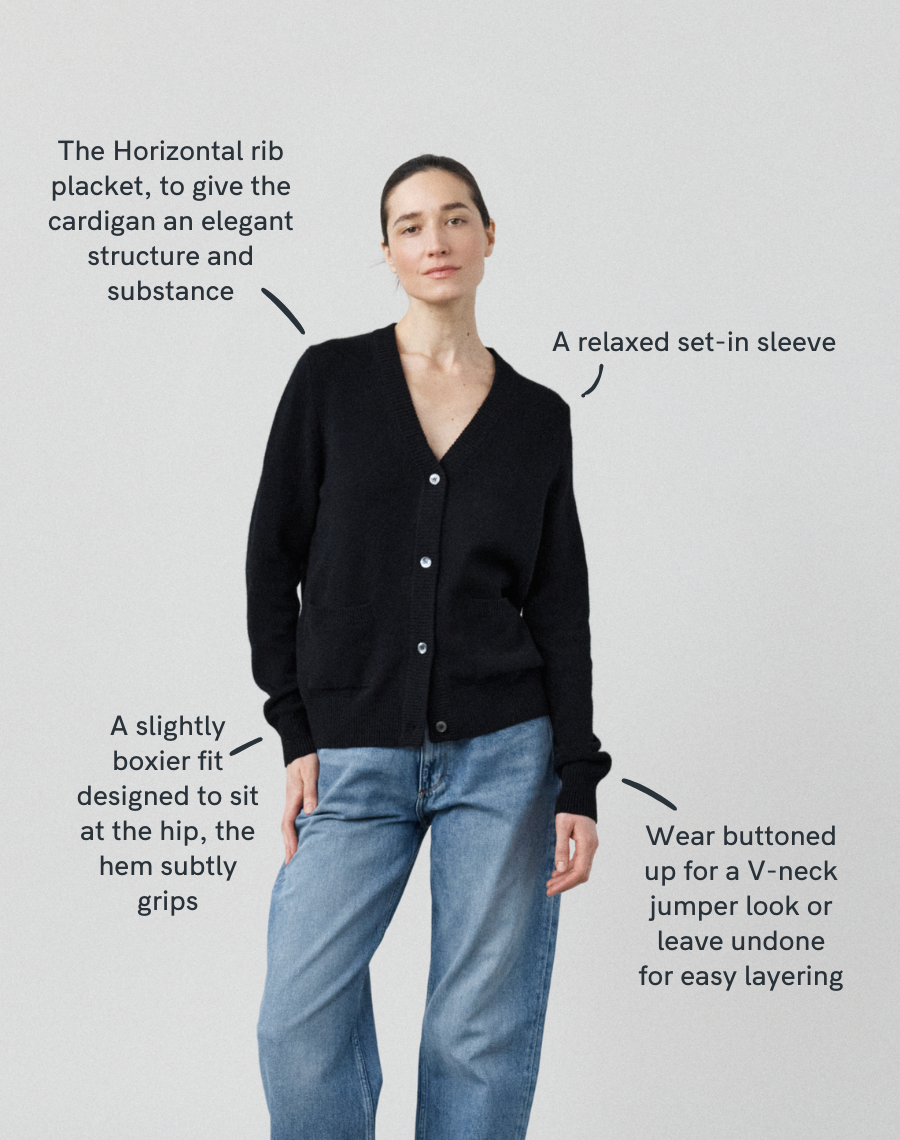 The original cardigan - a perennial bestseller and still the benchmark. Relaxed yet polished, classic yet modern - it works buttoned up or left undone, with whatever your style. Inspired by the cardigan worn daily by our founder Rachel’s grandfather, it’s old school made new, with a simplicity that always feels right. Knitted in the British Isles from 100% traceable Scottish-spun lambswool and finished with our signature horizontal placket and sustainably sourced Mother of Pearl buttons. A modern icon - the cardigan, done properly.