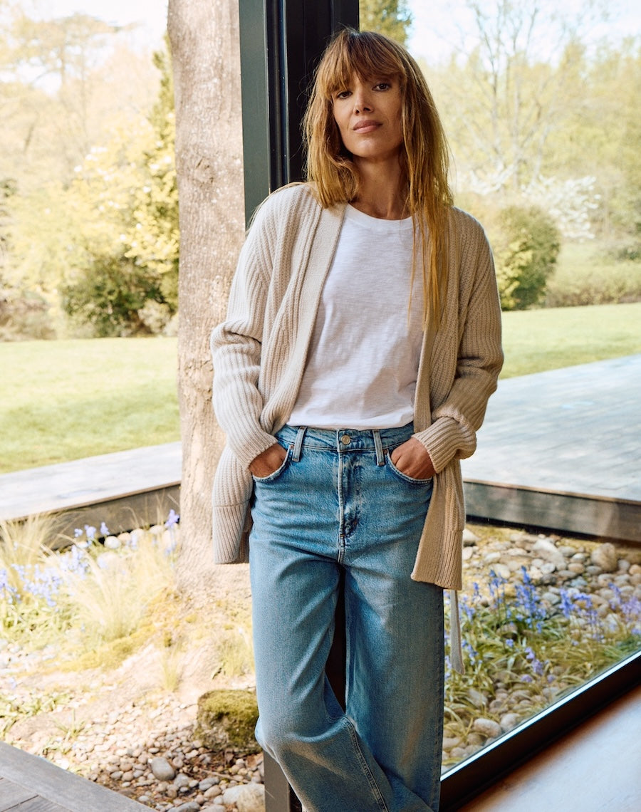 Our 5gg cardigan - the same weight as our best-selling Easy Cardigan, with a rib stitch adding subtle structure. Warm, but with an easy lightness. Perfect layered over a tee on mild spring days, or under a long-line coat through the colder winter months.