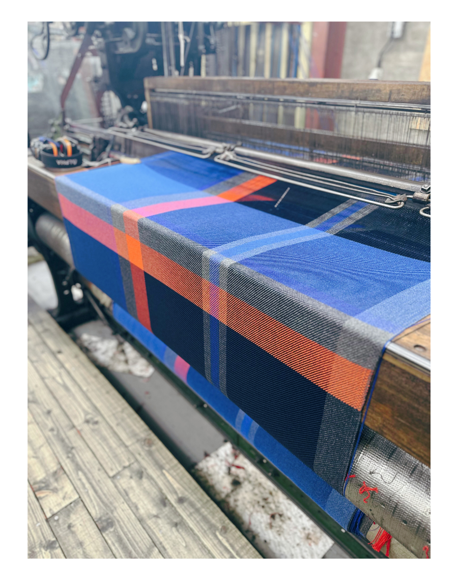 Built in 1929, these looms produce a traditional selvage that only true shuttle weaving can achieve - a mark of quality now rare in the UK. Each Shuttle Loom has a chain - for this specific project the tartan chain was Claire's largest ever at 1,000 lengths, and built entirely by hand over three days - a record even for Martin, who’s been in the industry for 60 years.