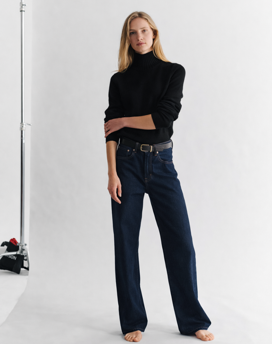 Pre-order for despatch mid-January. Nineties ease. Made new. The Funnel. Perfected. A new Navygrey silhouette - paying homage to the very first funnel we created. In a mid to lighter-weight gauge, with no shoulder seams or bulky joins, it sits beautifully against the body - soft with just the right amount of drape. Knitted in Scotland with 100% superfine lamb’s wool - using seamless circular technology, it delivers a clean fit with just the right amount of drape - just like our New Classic Crew. Think early 90s Vogue - straight-leg denim paired with a good belt. This is the kind of knit that slips into your wardrobe with confidence. Modern. Minimal. Endlessly wearable.