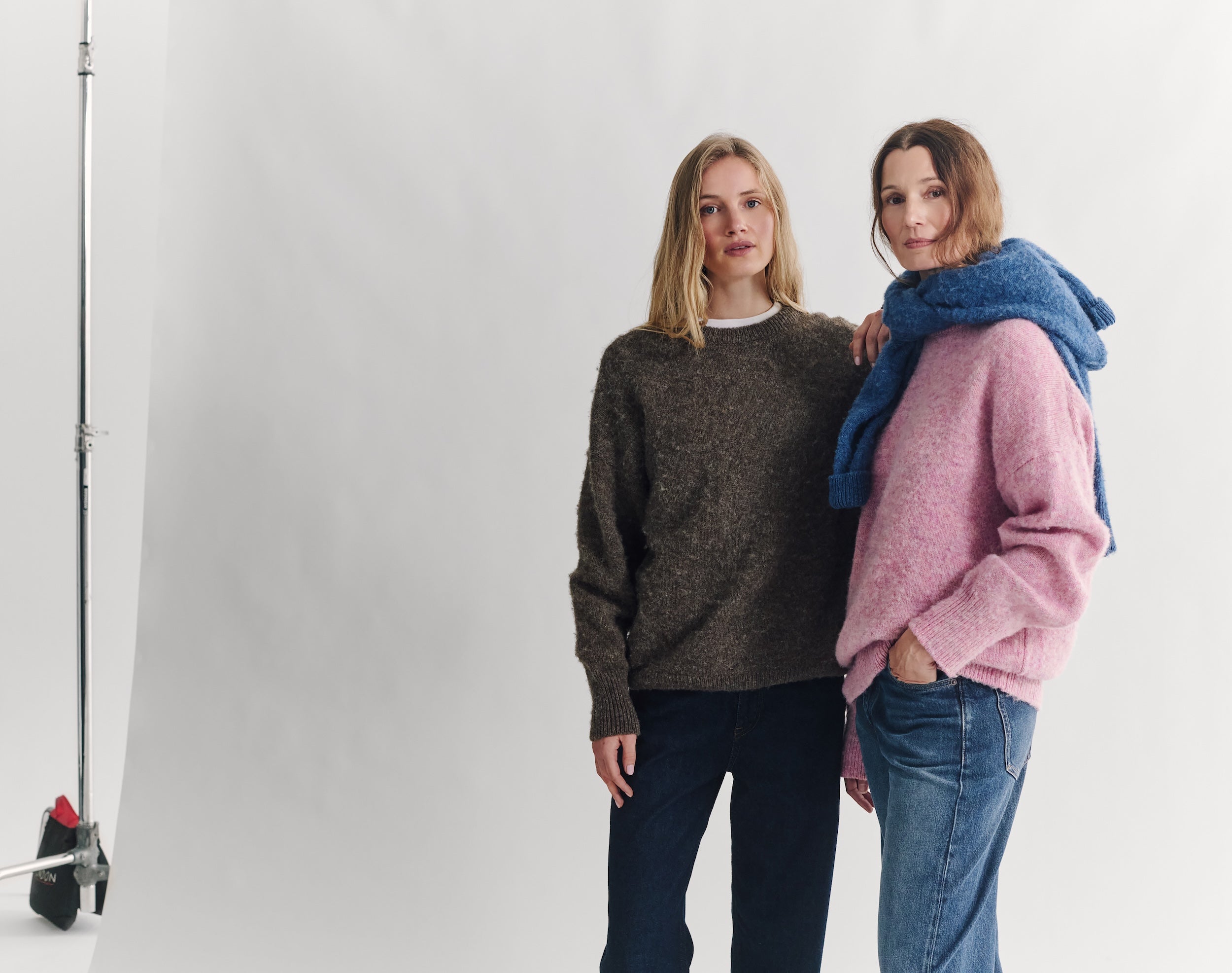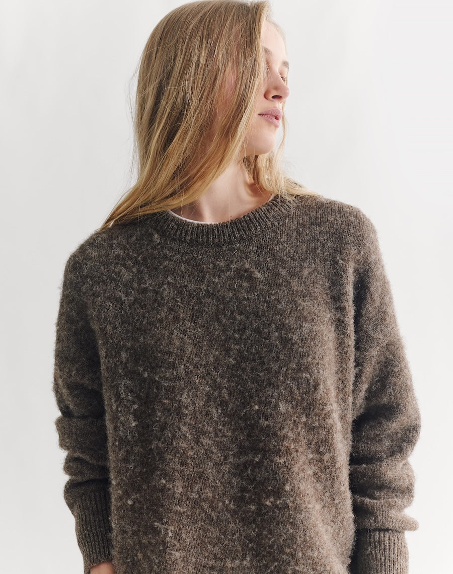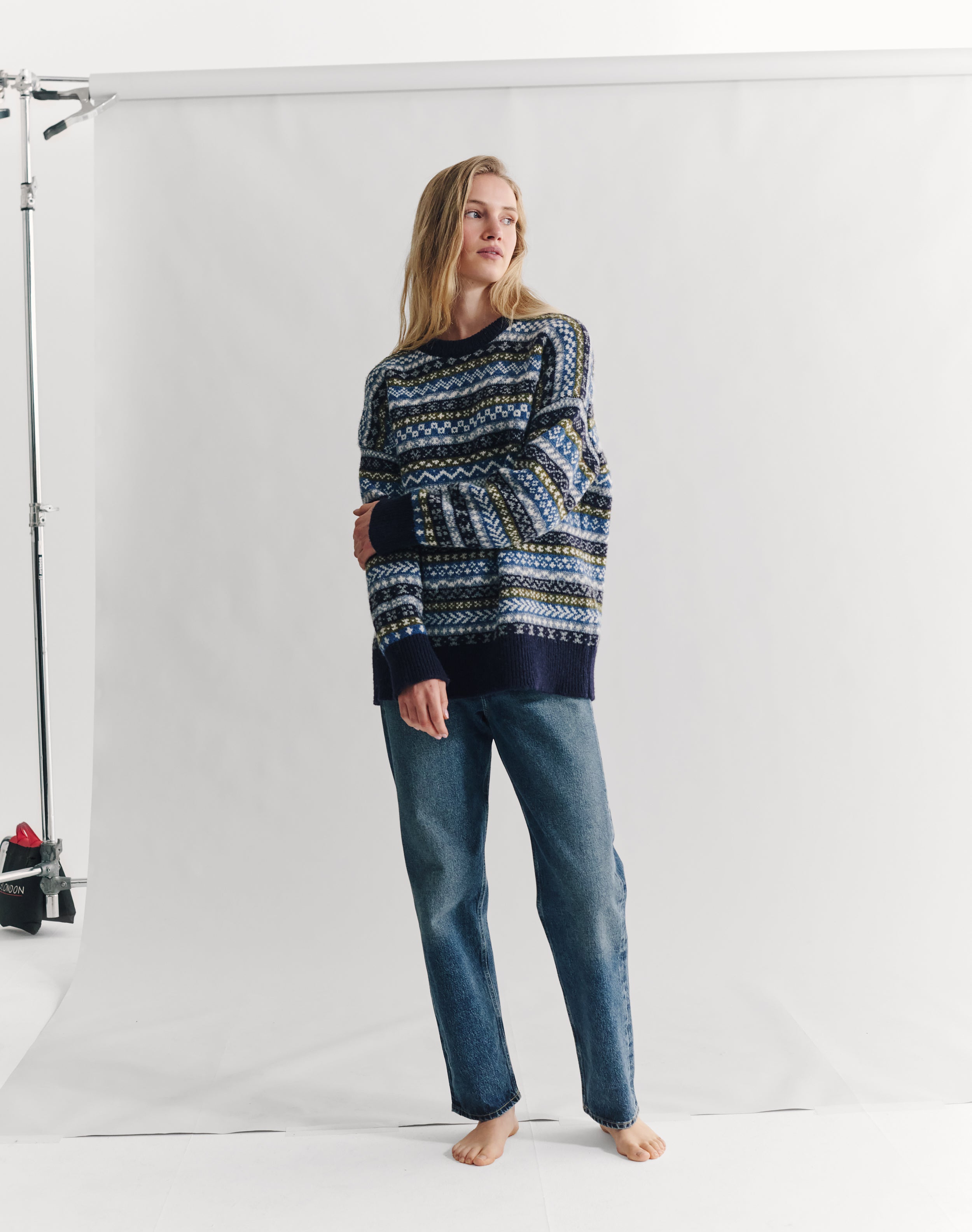 Knitted and teasel-brushed in Scotland, these three knits have that soft, airy, unmistakably Shetland texture. The silhouette is subtly oversized with an easy, lived-in slouch - relaxed but never heavy. A true heritage fibre, knitted properly and just so easy to wear. The knit to make you feel instantly at home.