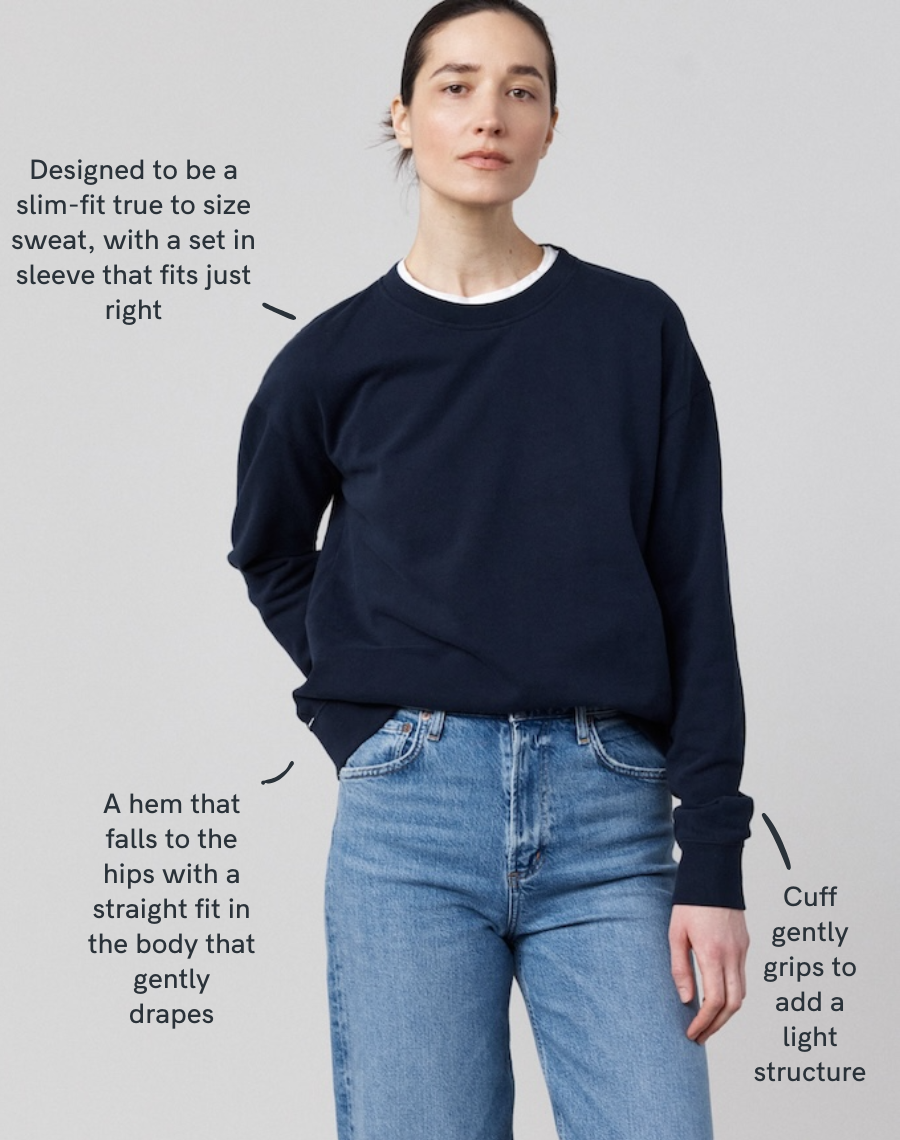 The Lived-in Loopback takes the best of three worlds - the softness of a knit, the ease of a sweatshirt, the simplicity of a top. With a drop sleeve and gentle slouch, it’s designed for comfort that still feels polished - it's all in that classic cut. Soft enough to wear on its own, refined enough to style as a top. A drape and ease that will work whether dressed up or down - wear it your way. 100% organic. It's the layer you’ll live in.