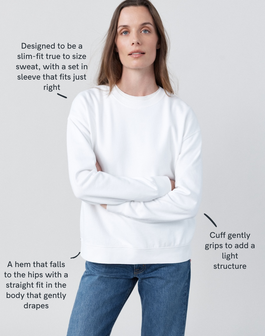 The Lived-in Loopback takes the best of three worlds - the softness of a knit, the ease of a sweatshirt, the simplicity of a top. With a drop sleeve and gentle slouch, it’s designed for comfort that still feels polished - it's all in that classic cut. Soft enough to wear on its own, refined enough to style as a top. A drape and ease that will work whether dressed up or down - wear it your way. 100% organic. It's the layer you’ll live in.