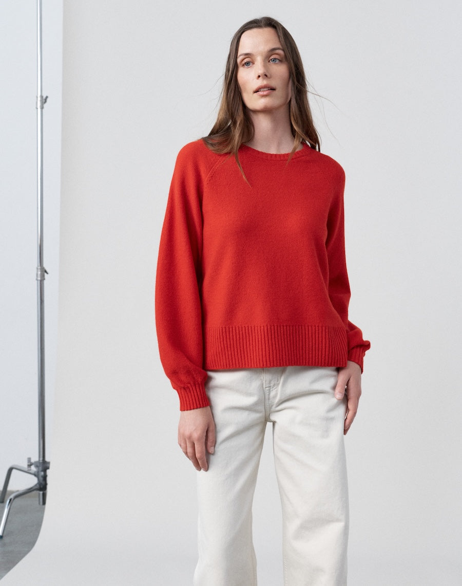Drawing on the ease of our Relaxed and Easy shapes, with the considered raglan sleeve of our much-loved Weekend crew. A softer structure - more fluid, more feminine - grounded in everything we believe good knitwear should be. Our signature Scottish-spun wool, knitted using the reverse of the jersey stitch - the purl side facing out - for a finish that’s subtle, soft and tactile. A sleeve with the slightest blouson. A neat neckline. A hem that drapes. A year-round, mid-weight layer - the one you reach for as the season shifts. Modern. Feminine.