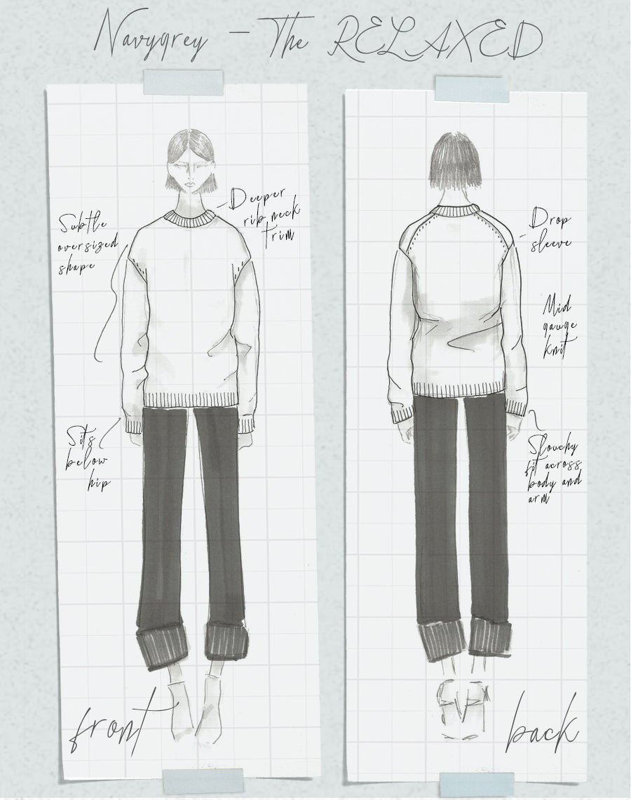 The original Navygrey knit, The Relaxed, was a 7-gauge, mid-weight jumper. The first cardigan in 2019 was a version made in the same wool. Then we thought it would be great to have a slightly lighter weight wool for when the weather changes - which we named the WEEKEND. That’s how we evolve; according to what is useful to have in our wardrobes and it's those pieces that have become part of our DNA and bestsellers year after year.