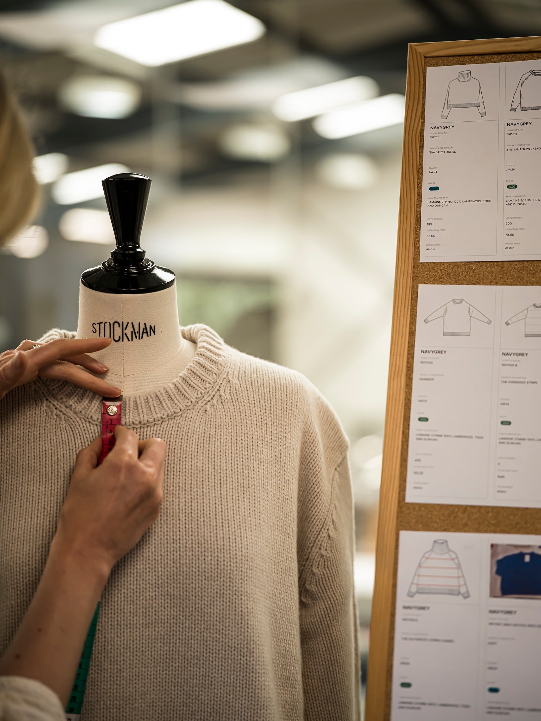 Founder Rachel launched Navygrey in 2019 with a small collection of five knitwear styles.