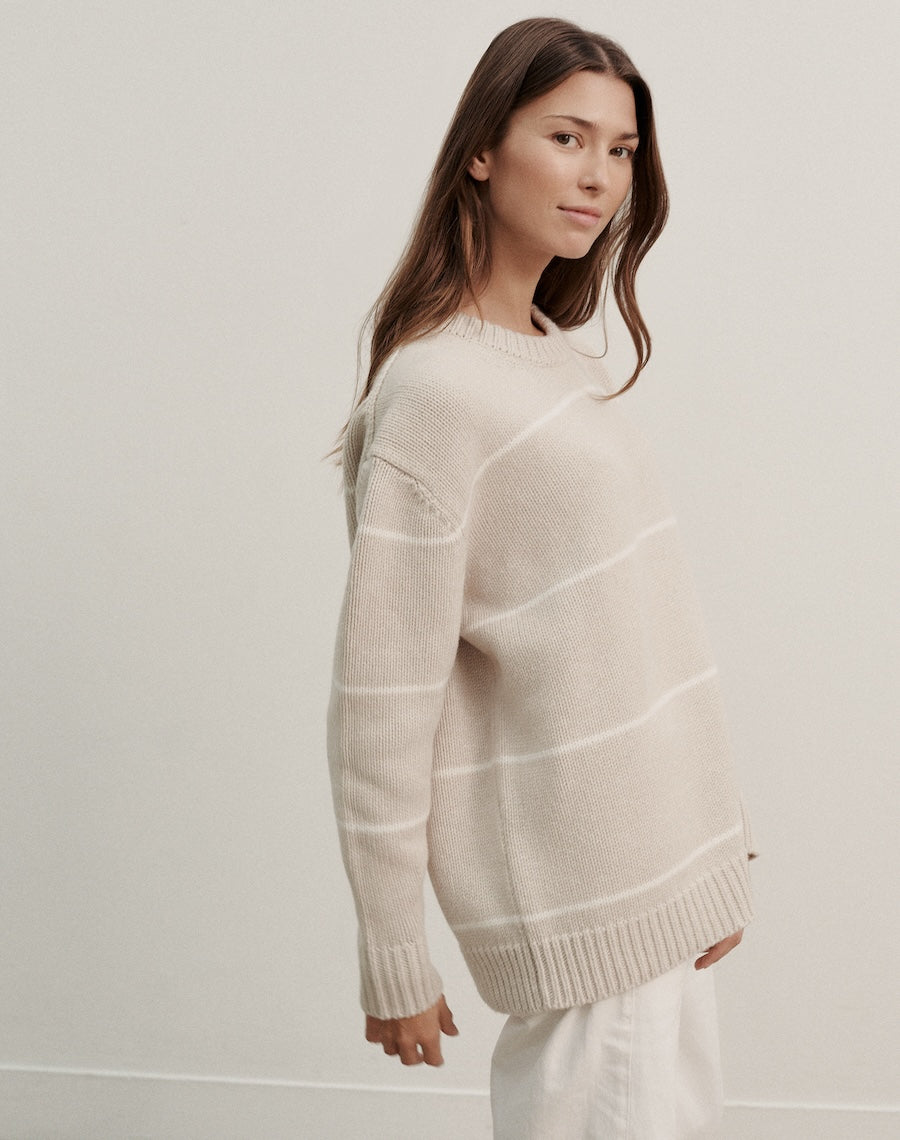 With its luxuriously cocooning shape, subtle drop shoulder and hem that drapes rather than grips, The OVERSIZE has all the ease that you want and need from a great knit.