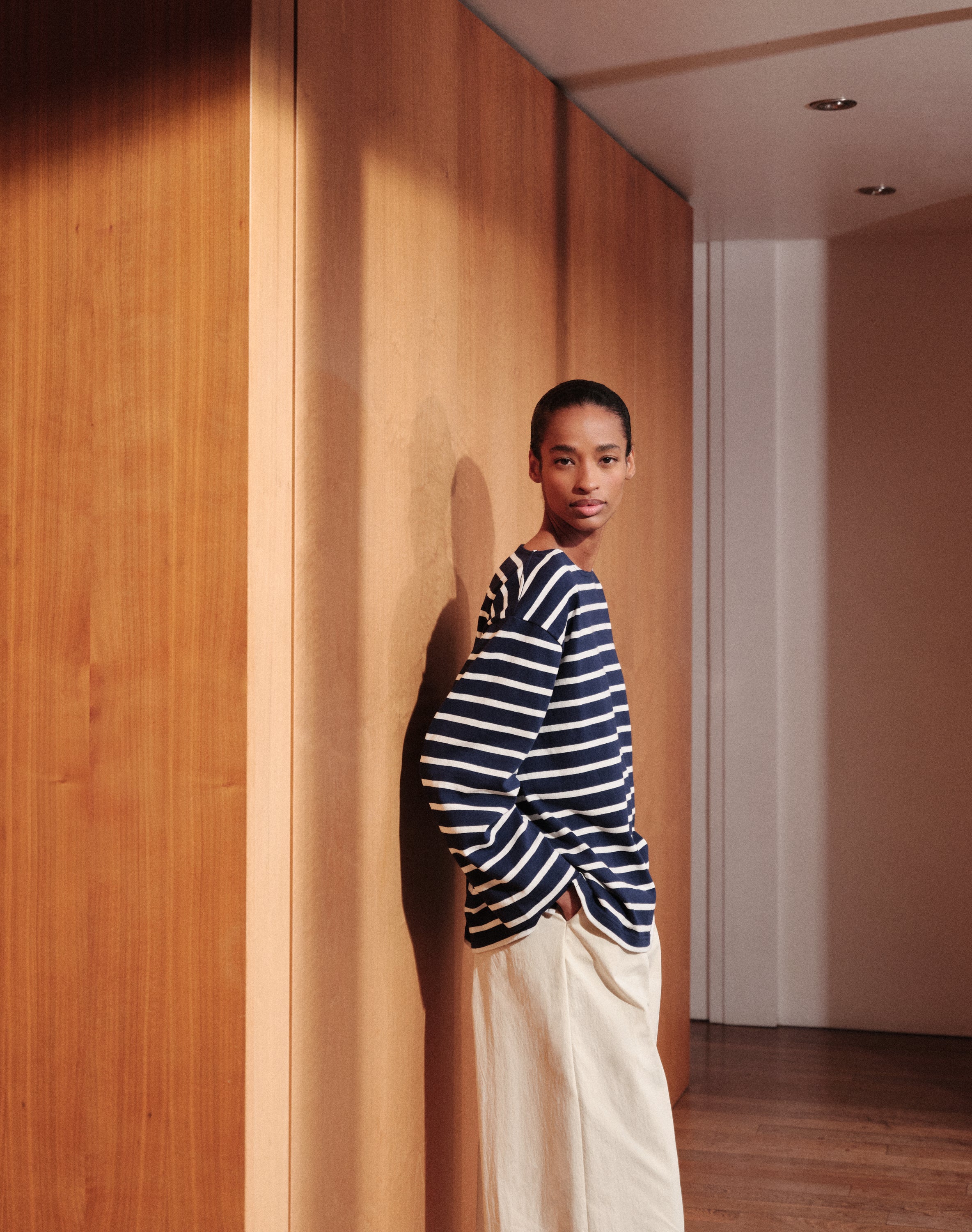 The thickness of the organic cotton creates a gentle structure that adds a luxury, cool feel. An iconic top, quintessentially French, yet something so inherently British too.