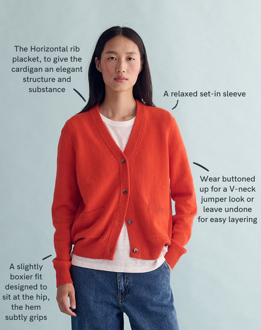 The original cardigan - a perennial bestseller and still the benchmark. Relaxed yet polished, classic yet modern - it works buttoned up or left undone, with whatever your style. Inspired by the cardigan worn daily by our founder Rachel’s grandfather, it’s old school made new, with a simplicity that always feels right. Knitted in the British Isles from 100% traceable Scottish-spun lambswool and finished with our signature horizontal placket and sustainably sourced Mother of Pearl buttons. A modern icon - the cardigan, done properly.