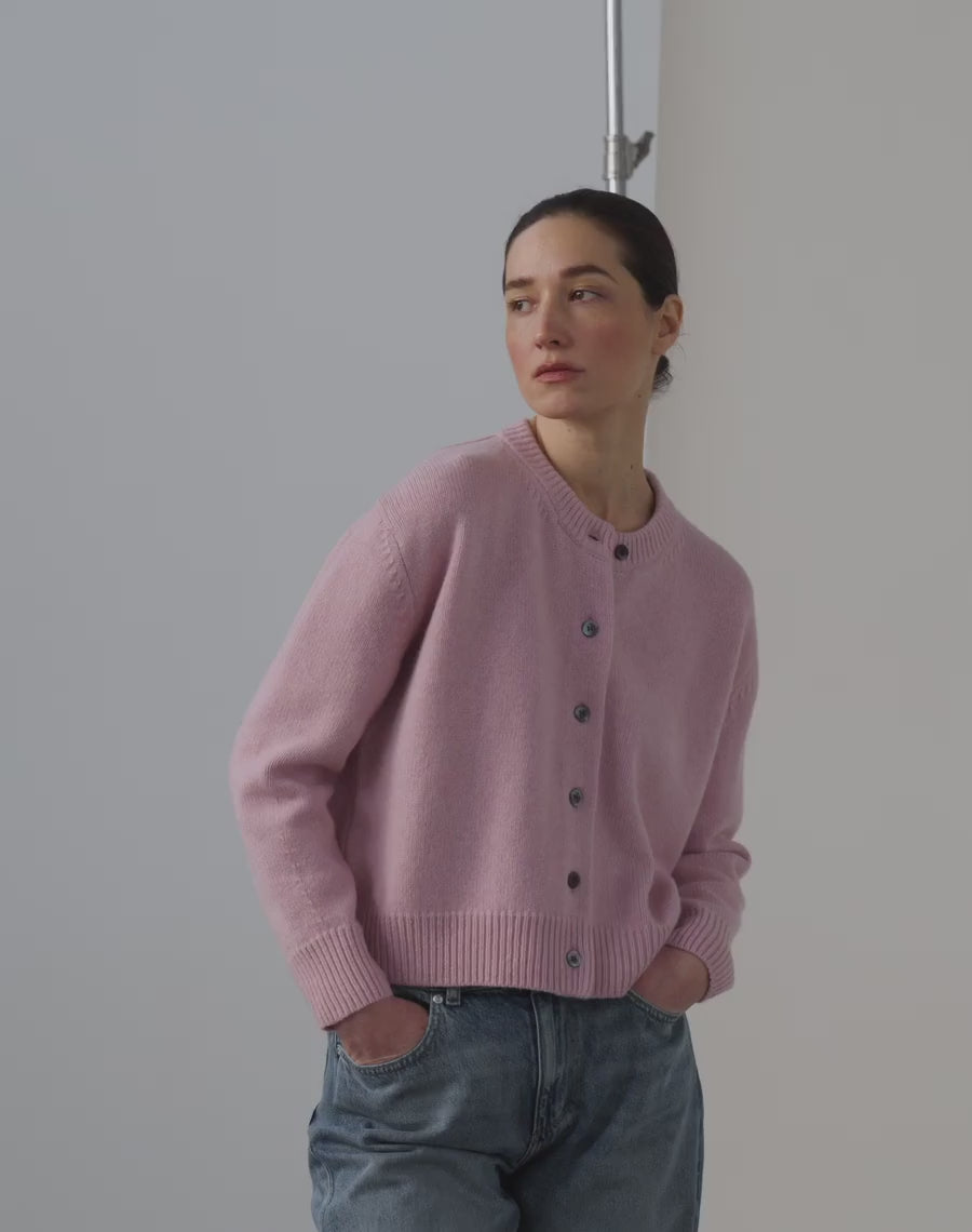 A boxier with a slightly wider, shorter fit cardigan. Falls to just above the hips and gently drapes. Finished with our signature double folded crew neck. The cardigan companion to our best-selling EASY.