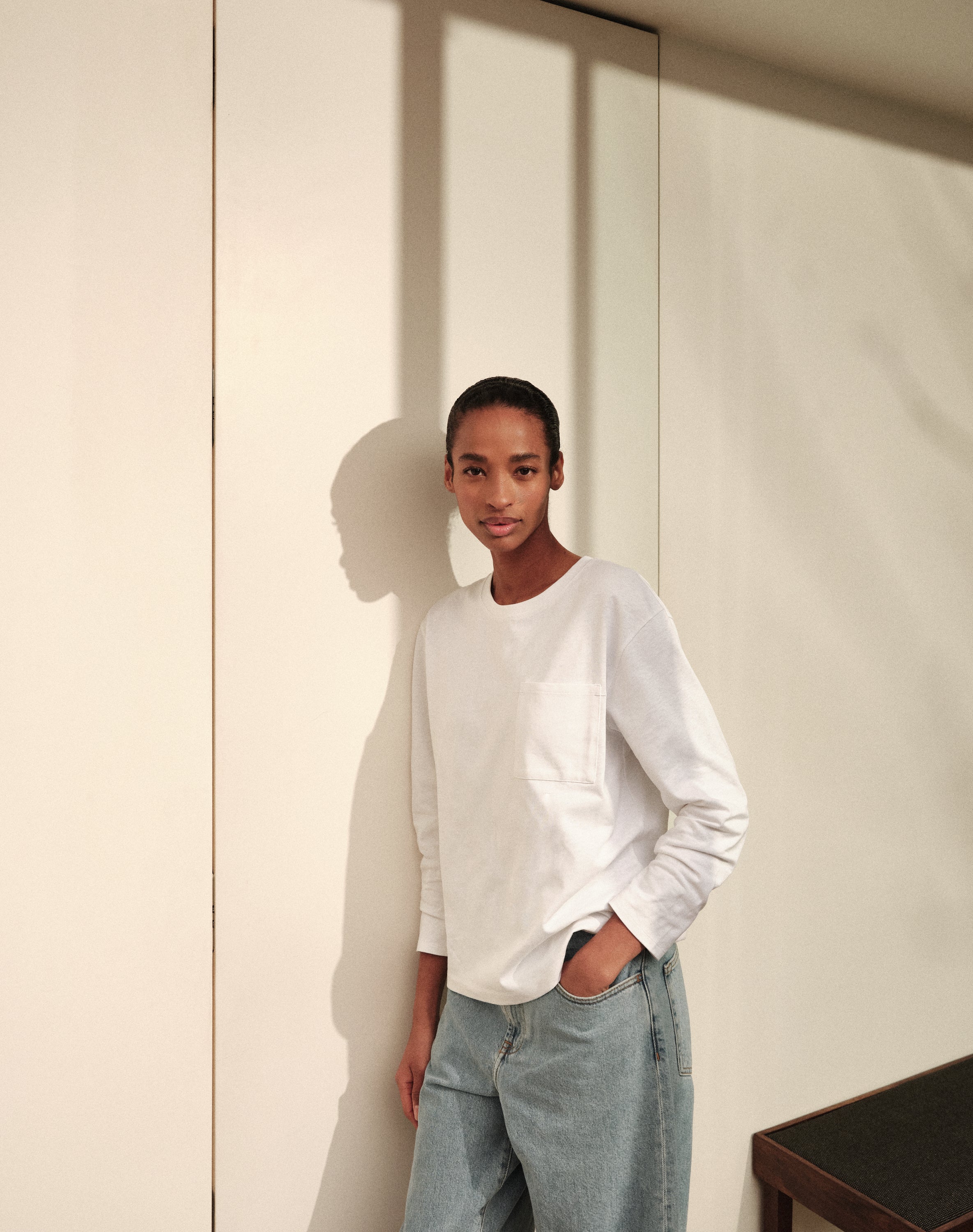 Crisp nonchalance. For autumn days. Cut with polish in mind - it’s the piece you reach for when you want to look considered without being too done. A hybrid almost between a tee and a sweatshirt. Old-school in feel, modern in fit. For those days when you want a little more structure that's also cool, modern and easy going - this is the one. Where softness meets structure. Slub-like, but not loose. Textured, but with definition. It feels different. The pocket gives it laid back finish, stitched with precision and detail to elevate.