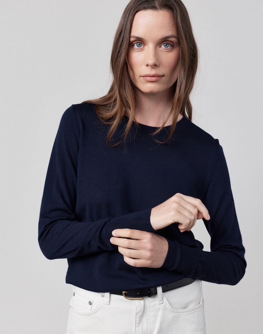 Soft, airy and easy to wear - crafted in finer 12gg and 10gg knits from 100% Italian-spun yarn, certified by the Responsible Wool Standard. Lofty but light, with that just-right warmth. Wear over a tee or on its own - this is comfort with a little polish.
